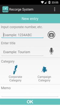 Recorge ®, create a corporation number book stores the corporate name and corporate number in the memory of the smartphone, is an app used corporation number and corporate name to a Google search. Corporation numbers can be read in the bar code. Corporation name can be voice input.