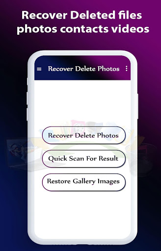 Our free photo recovery application provides users with a sophisticated, modern interface that is easy to interact with. just a single tap, you can perform the entire restore process yourself. 100% recovery process is safe.The android photo recovery tool app is highly secure and safe restore photos tool that will help you in recovering and restoring of all Do not be worry! This free photo recovery tool is ready to recover your pictures quickly.