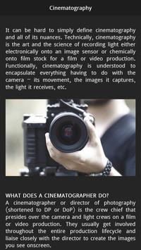 Learn Filmmaking app has basic film making tutorial with details & pictures & examples.