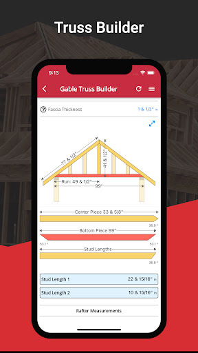 RedX Roof App has a Free Rafter Calculator, Free Construction Calculator, Gambrel Roof Truss, Bay Roof, Truss Hip Rafters, Hip Rafters, Valley Builder, Truss Builder, Plywood Angles, Turret Roof & Dormer Builder. You will save countless hours of work the first time you use it.