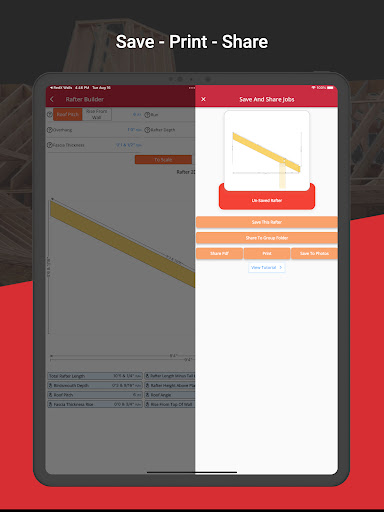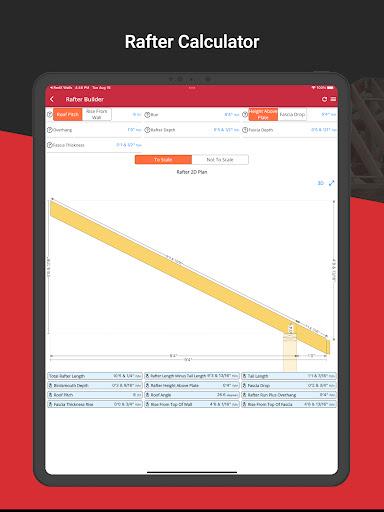 Then the app will automatically generate a to scale view of what the Rafter will look like, along with all of the measurements.
