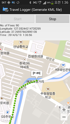 여행시에 여행경로를 GPS로 측위하여 KMZ파일로 로그를 남겨준다.