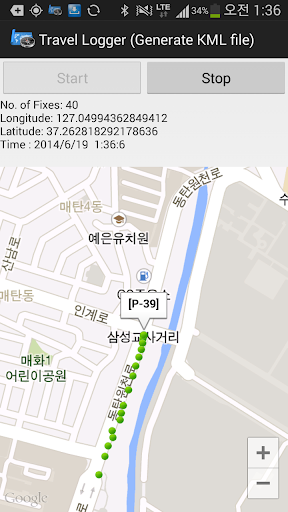 로깅을 멈추면 KMZ 파일로 생성해줍니다.