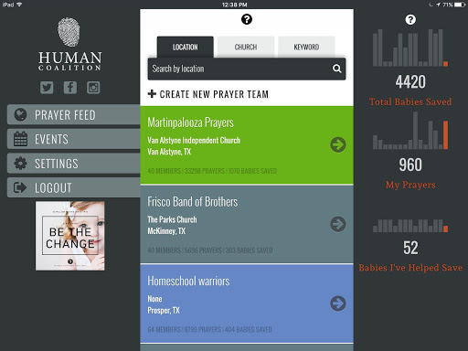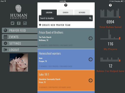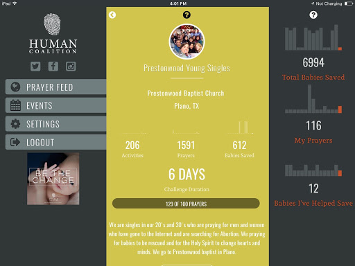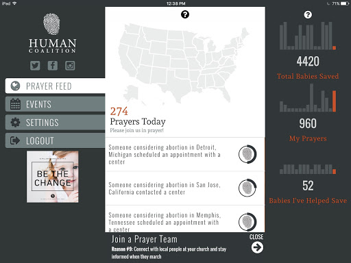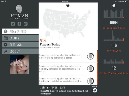 Harness the power of prayer and technology in real-time with the pro-life community across the country and Human Coalition to rescue children and serve families together.