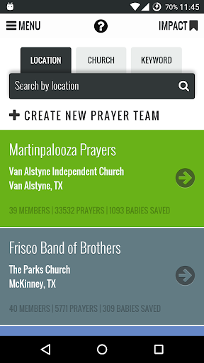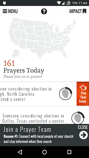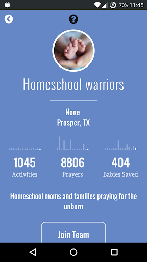 • Create or join a “Prayer Team” to form a community of app users praying for women and families considering abortion. Prayer Team organizers can create prayer goals and discussion threads for the team, and team members can track the impact of all the team’s prayers over time.