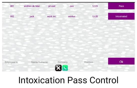 Store the Clients Workers details on the device and check if they are Intoxicated or do they Pass the Test.