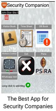 This is Security Companion for Security Officers that are Registered with Psira,a Handy Security Related Tool.It is in no way associated with Psira but serves as a Tool for Access Control,Security Officer Time Sheet,OB Book and a Workers Intoxication Pass Control.