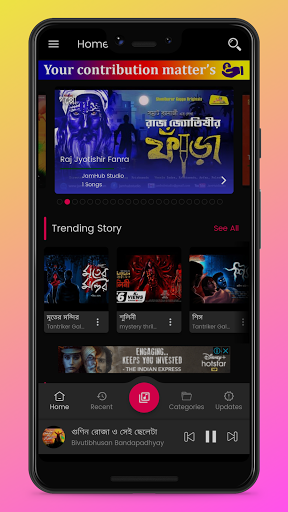 No 1 app for playing all audio story | Sunday Suspense, Midnight Horror station, Bhoot Fm, Mayajal, Rohoshya romancho, Happyto distrub, Kuasha, Govir Rater Gopon Kotha, Live radio station from all over the world and many more.