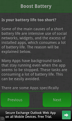There are some Apps specifically created to stop background Apps, but these apps do not work properly and fail to stop most of the Apps. These Apps continue to run in the background consuming battery life. In this app you will learn how to increase your battery life with a few simple steps.