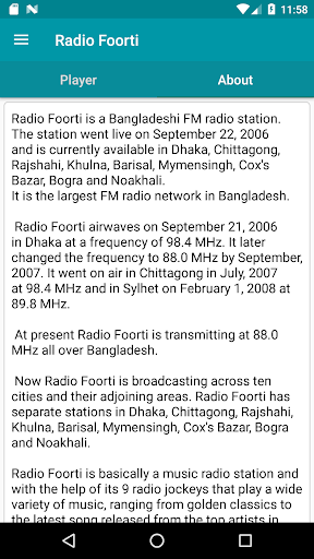 Radio Foorti is basically a music radio station and with the help of its 9 radio jockeys that play a wide variety of music, ranging from golden classics to the latest song released from the top artists in Bangladesh, even mixing the hottest international tracks into the playlist. The main interaction with the station is via text messaging Phone Calls.
