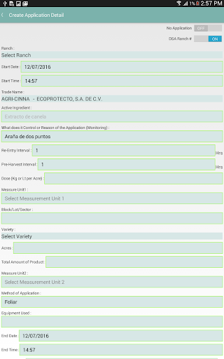 Food Safety App is used for reporting the application of the pesticide in the fields in a timely manner to DSA (this information is needed for DSA to receive the fruits) and the importance transcends law requirements of the country of destination and internal audits being a requirement for compliance with GLOBAL G.A.P.