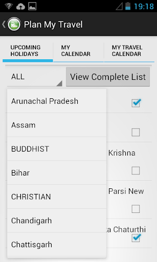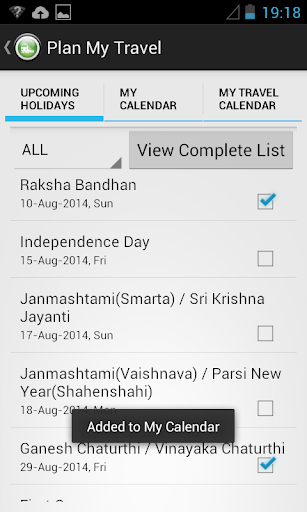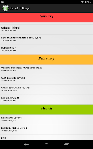 i) Displays Exhaustive LIST OF INDIAN HOLIDAYS, which also be viewed can be
