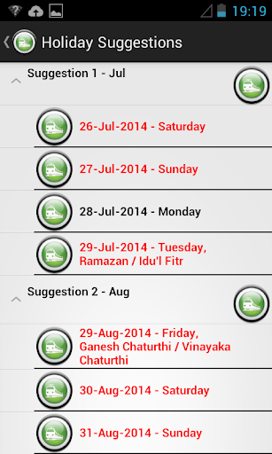 ii) Shows HOLIDAY SUGGESTIONS for the holidays you have chosen