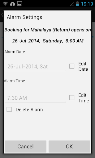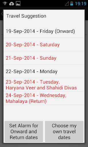 Based on this suggestion, it automatically determines the user's most preferred Onward and Return journey dates and can set alarm for booking the same...