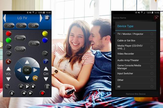 Remote Control For All TVs is very simple to setup, just add your devices to the remote from our massive database of home theater devices. Control your TV, Xbox360 and One, Cable and Sat boxes, media manager, HTPC as well as PVR, DVD and Bluray, some air conditioner and lighting controllers, even that old VCR.