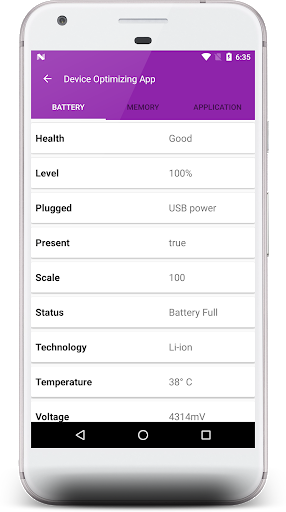 voltage, temperature and health in an App,with easy to understand text and graphics