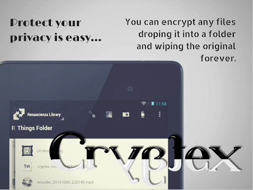 ☆ No need to trust on any other application for data entry: Cryptex has its own keyboard and recorders to audio, video and photography.