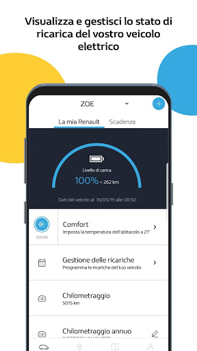 L'applicazione MY Renault è collegata ai tuoi veicoli elettrici e ti permette di: