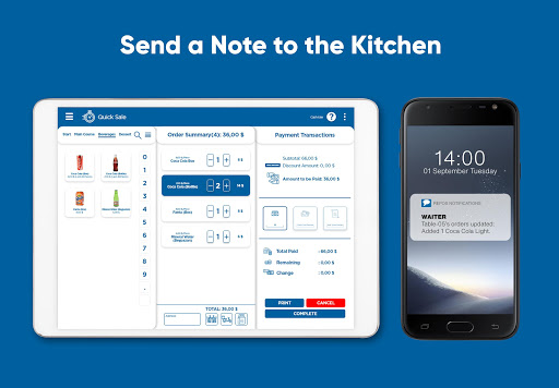 • Allows your waiters to take orders quickly and without error via mobile devices,