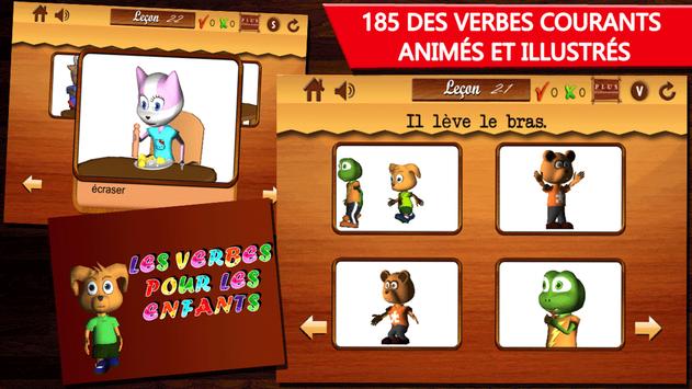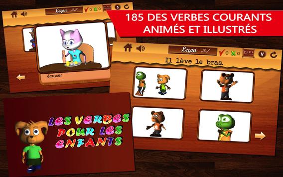 contient 185 verbes communs en plus (80 animés et 105 illustrés) accompagnés de sons : effets sonores et lecture de chaque verbe. Le but ici est d’apprendre les verbes au niveau du mot en tant que tel, puis, au niveau d’une phrase. Le second objectif est de développer le vocabulaire, de parler en utilisant la construction verbale et enfin d’apprendre le langage.