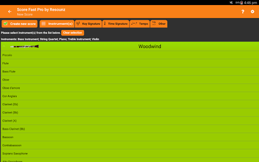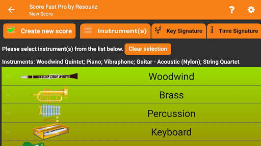 - Easily add/delete instruments at any time - including transposing instruments, and common ensembles.