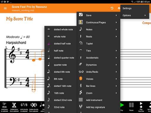 - Compose and edit your music faster than writing it on paper simply by selecting a note, rest or other musical notation and then tapping on your score.