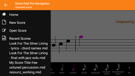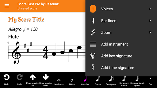 Music notating, composing, playing and printing is simple and fast with Score Fast Pro.