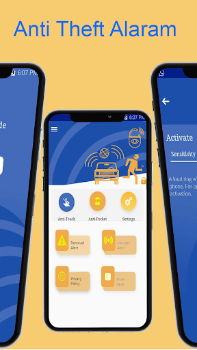 Anti theft alarm app protects your privacy by notifying your user through alarm. You can set alarm on your phone using anti theft alarm app feature to protect un authorized access to your private data on mobile phone.