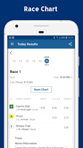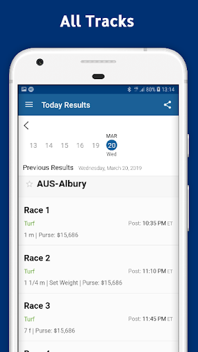 US horse Racing is an android app that offers reviews of thoroughbred, harness and greyhound wagering content from over 200 of the world's premier racetracks. US horse Racing features reviews of the best tracks in the United States, including Churchill Downs, Santa Anita, Keeneland, Gulf Stream, Belmont, Pimlico, Saratoga and Del Mar.
