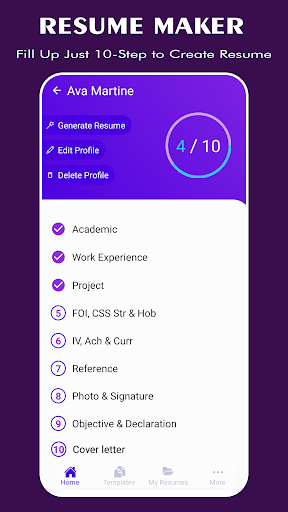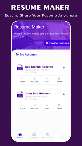 Free Resume builder app will help you to create professional resume & Curriculum vitae (CV) for job application in few minutes.