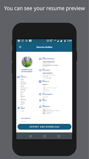 The application will never disappoint you as it will facilitate you with the "PREVIEW" option before generating a final download. Now getting your dream job is just a TAP away. Our FREE CV BUILDER is all you need. Packed with more enticing templates and graphical options, the application will form you a HIGHLY PROFESSIONAL RESUME like no other.
