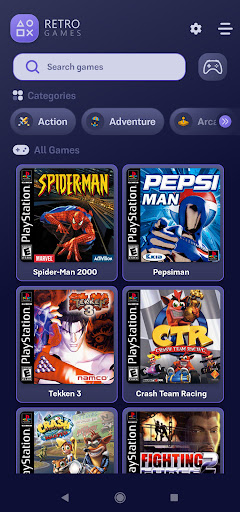 "Retro Games PSX/PS1 emulator allows users to access a vast library of classic games that were released on PlayStation 1 and play them directly on their mobile phones. This application uses emulation technology to run PlayStation 1 games on the Android system, so users can enjoy their favorite games from anywhere and at any time, without the need for the original PlayStation 1 console.
