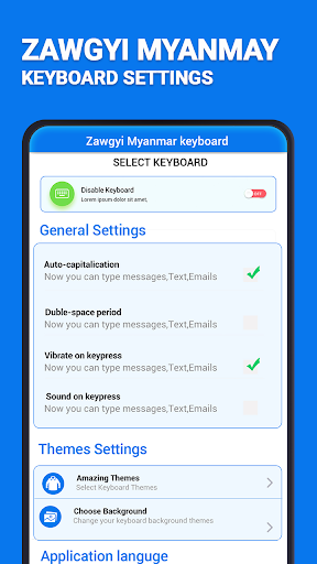 ★ Different themes are designed with color combination and Stylish theme is a colorful Zawgyi Myanmar keyboard which has transparent theme wallpapers Select theme that suit you