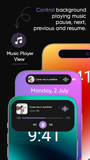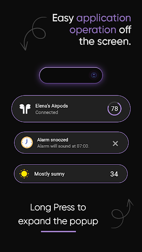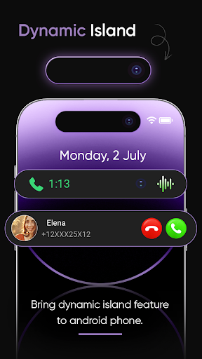 This is a special design with users' choice customization in a simple pill-shaped. You can find this dynamic island notch area at the top of the mobile display to show relevant and all kinds of notifications, such as background activities, Music playing control, news popup, incoming messages, Phone charging, a phone full charged, battery low alerts, Weather alert, activities and many more!