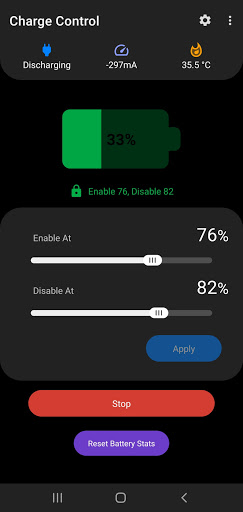 This app helps prevent overcharging of your device by limiting charging to a particular level.