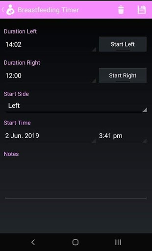 Breastfeeding timer is designed to record times of feeds and the duration you are your baby is feeding on each side.