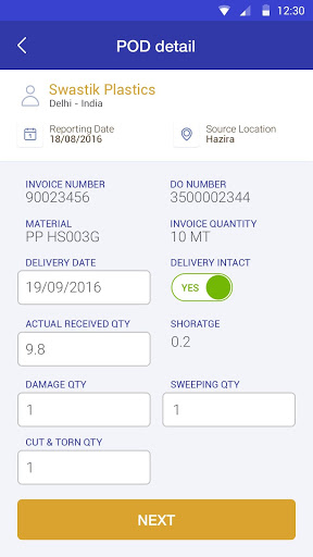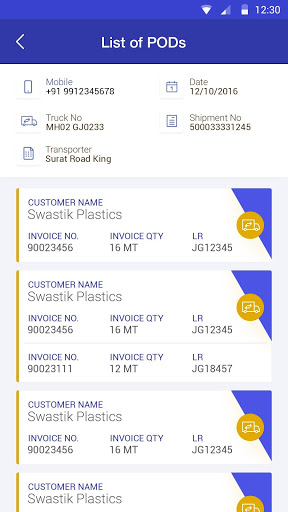  Allows to capture details of recipient like name, mobile number, signature and photo copy of physical POD.