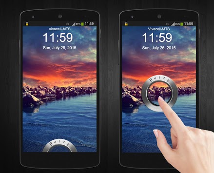 To unlock phone or to open lock screen user should move lock screen unlocker ring to center of screen and realize it.