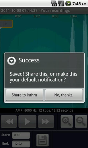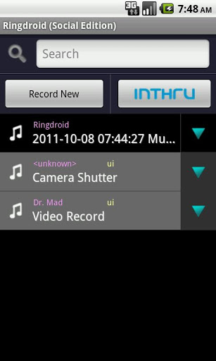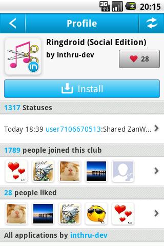 Every application, Unique social network RingdroidSocial Edition is based on Ringdroid open source project and inthru plugin.Create your own ringtone, alarm, or notification sound from an existing audio file, or record a new one directly on the device.Get more ringtones from inthru is the largest diffrence with offical app. It39;s very cool.You can experience the social network by click the inthru button and registered user after installed this application. You can communicate, share your new sounds with other users. You can also make your own music clips or materials...