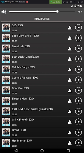 Để có những bản nhạc chuông mới cho điện thoại Android của mình EXO Ringtones Free là một lựa chọn tuyệt vời cho bạn. EXO Ringtones Free là bộ sưu tập tất cả nhạc chuông của EXO tốt nhất. Gần 100 bản nhạc chuông trong EXO Ringtones Free. Bạn có thể tải nhạc chuông EXO Ringtones Free để cài đặt nhạc chuông mặc định, nhạc chuông tin nhắn, nhạc chuông báo thức.