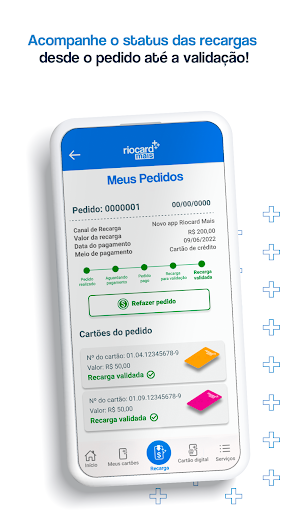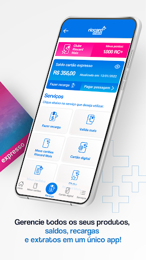 O app Cartão Digital agora é o Riocard Mais. Com ele você pode fazer a gestão completa de todos os seus cartões Riocard Mais, acompanhar saldo, extrato, ver o status dos seus pedidos e recarregar, pagando com Pix, cartão de crédito ou débito! Caso seu aparelho tenha NFC disponível, você consegue ainda pagar passagem e validar recarga, tudo isso direto pelo celular.