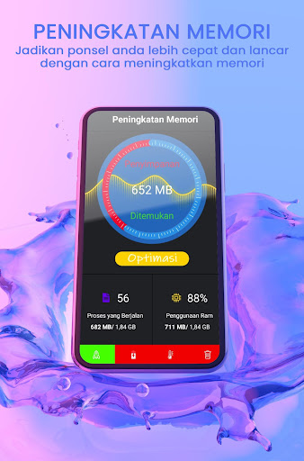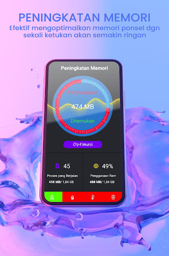 Aplikasi Pembersih Memori Hp ini memiliki fitur yang berfungsi meningkatkan kinerja memori, menghemat baterei, menghapus file sampah, mendinginkan cpu dan fungsi pembersih seperti cleaner app lainnya.