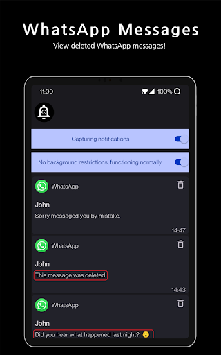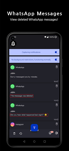 ✓ View WhatsApp messages that were sent but later deleted by the other person.