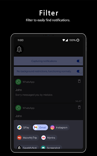 SaveMyNoti, a notisave app, to the rescue. You can filter your recent & past notifications (from the day of app install) and review any important info that you might have missed. Anything that appears as a notification, be it email, sms or messages/communication on any social media app, will be automatically backed up.