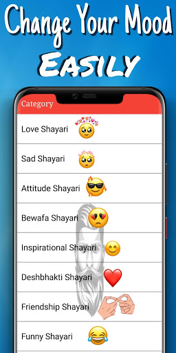 This is a shayari application, which help you to share your feelings, change your mood easily. Their are lot of category like love shayari, sad shayari etc. You can share your feelings anyone according to your choice.