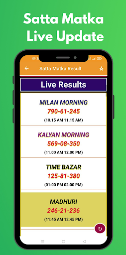 Satta Matka Result is the app where you can see the live satta matka result. Free app to get matka result and trick for satta matka. You can see the live result of all the the bazar like kalyan, milan day, milan night, rajdhani day, rajdhani night, time bazar, main bombay, main bazar, madhur day/night, kuber day/night.