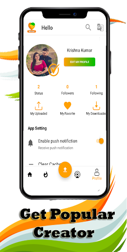 Hello Video Status App the user can add his favorite posts,download post,share post,create post with image,gif,video,quote & become famous amongst his followers.