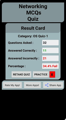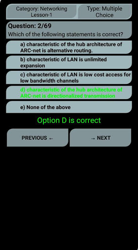 "Networking MCQs". An Android Application Containing more than 700 multiple choice questions. This bank of Multiple Choice Questions focuses on all core areas of Networking. These topics are chosen from a collection of most authoritative and best reference books on Networking. This App contains Twenty three Quizzes each quiz contain 30 to 35 Questions with answers. And also 10 lessons for practice.