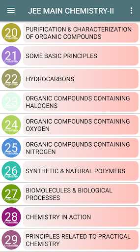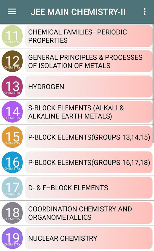 ✔The app covers these three branches—Physical, Inorganic and Organicin (10 19) chapters.