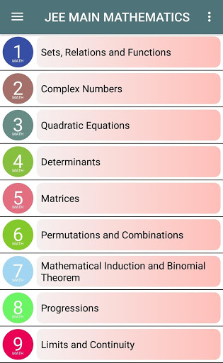This App Complete Mathematics JEE Main, is primarily meant for the candidates due to appear in CBSE’s JEE (Main). It thoroughly covers all the topics prescribed in the Mathematics syllabus of this examination.